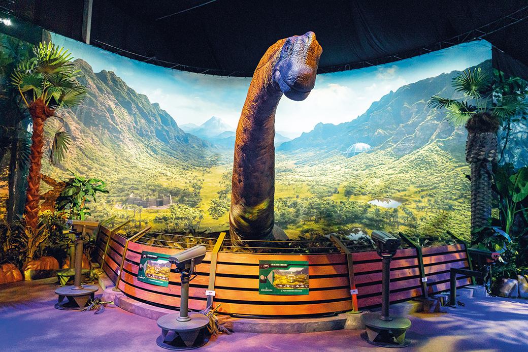 Ihren Ursprung nahm die Erfolgsgeschichte vor über drei Jahrzehnten mit dem Kino-Hit „Jurassic Park“ von Steven Spielberg. Hinter den ikonischen Flügel-Toren wartet nun ein lebensgroßer Brachiosaurus, Velociraptor Blue liegt auf der Lauer und der mächtige Tyrannosaurus Rex gebietet Ehrfurcht.