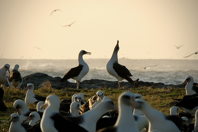 Ein Paar Laysan-Albatrosse auf dem Midway-Atoll.